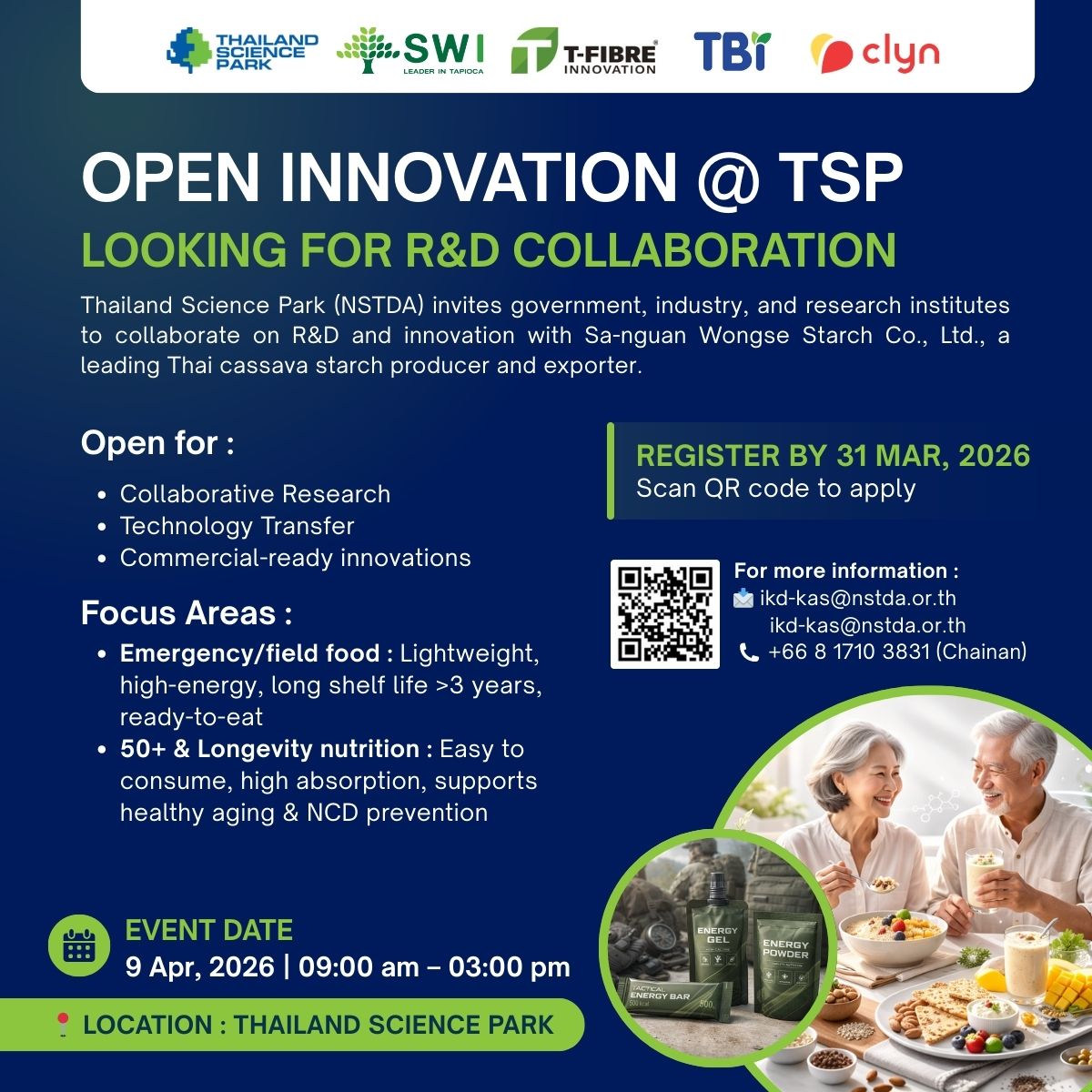 Open Innovation @ TSP : Looking for R&D Collaboration Thailand Science Park (TSP), NSTDA, invites government agencies, private sector organizations, and research institutes to explore opportunities for research and innovation collaboration with Sanguan Wongse Starch Co., Ltd., one of Thailand’s leading cassava starch producers and...